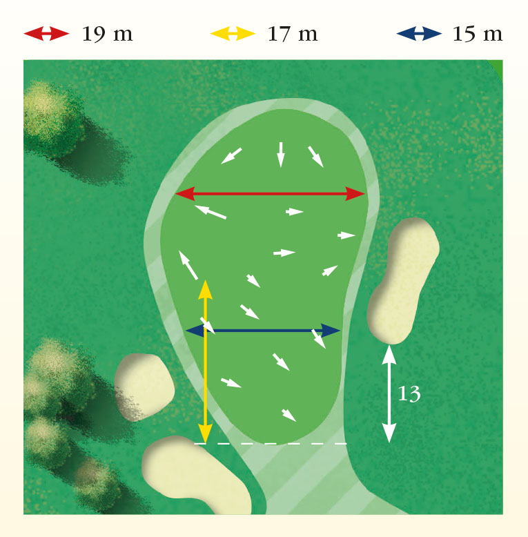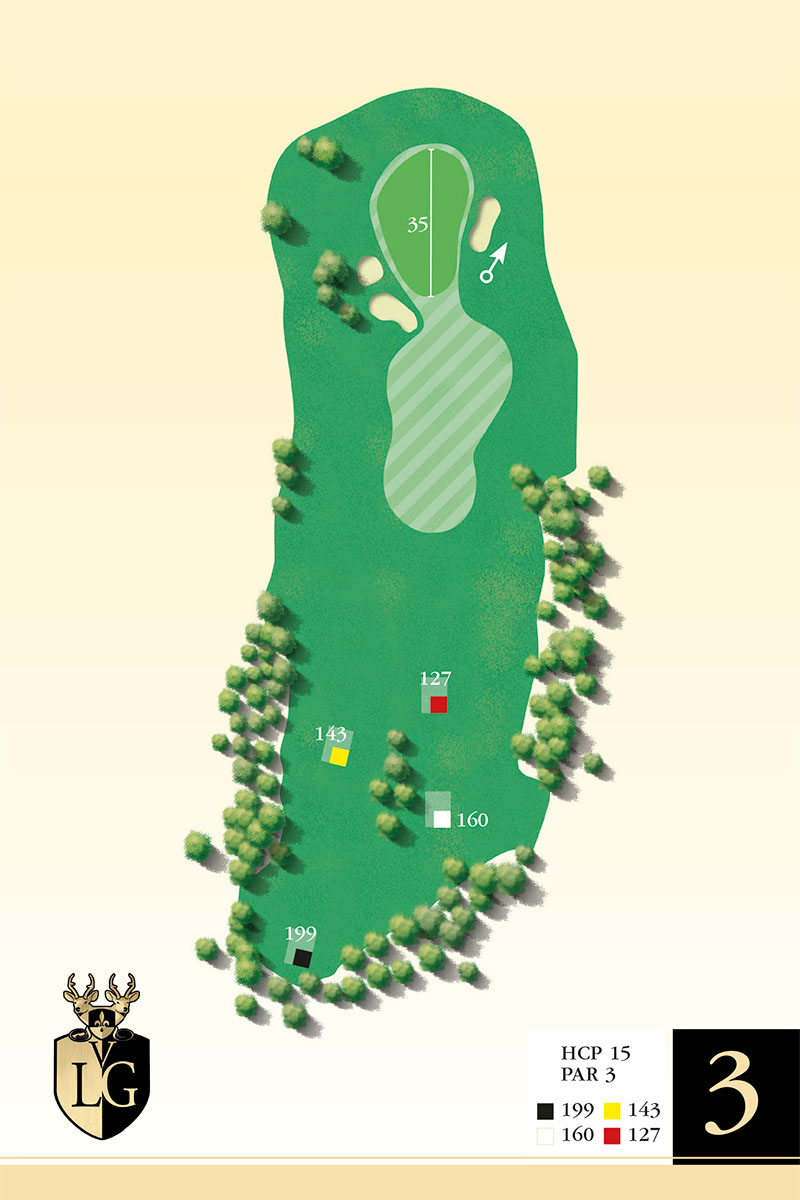 First of the four beautiful one-shotters at Linna, where the club selection is crucial. The hole can play anything from a comfortable short iron to even a 3 iron/hybrid, depending on wind conditions and how the tee box is set up. Missing long and left means trouble here, as the green slopes slightly to the right from its entire length.