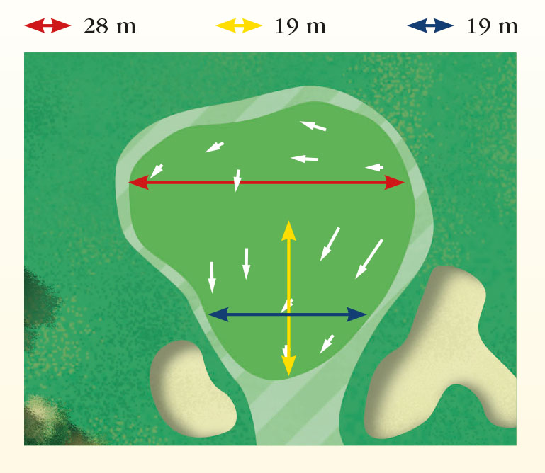 Another lovely par three down the hill, where staying short is usually smart. The massive putting surface slopes to the front from its entire width, meaning extremely slippery putts and scrambling opportunities, if the club selection is misjudged.